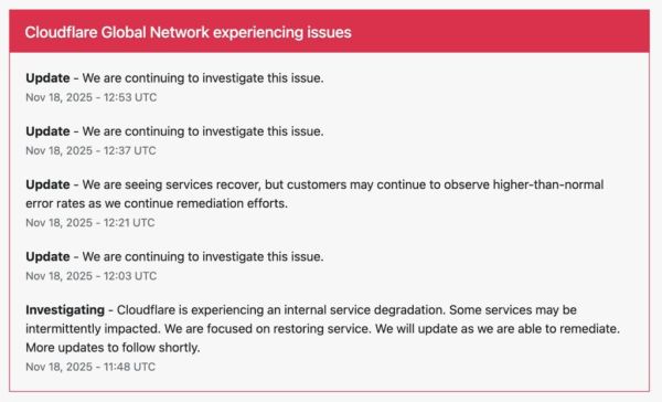 At 5:18 pm IST, they acknowledged the global network outage stating “Cloudflare is experiencing an internal service degradation. Some services may be intermittently impacted. We are focused on restoring service. We will update as we are able to remediate. More updates to follow shortly.”