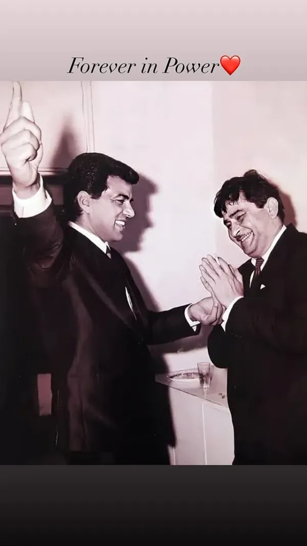 Actress Kareena Kapoor Khan shared a couple of images of the veteran actor with her grandfather, Raj Kapoor, on her Instagram stories, captioning them: "Forever in power."