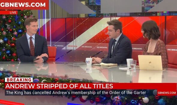 "Goodness me," Tom Harwood exclaimed as he turned to Cameron Walker, seeking clarification after assuming Andrew had already been stripped of all his royal titles. The royal correspondent explained: "Not quite, Tom. The Palace I think tried to do it quietly but it ended up in the London Gazette.