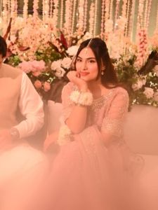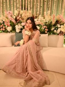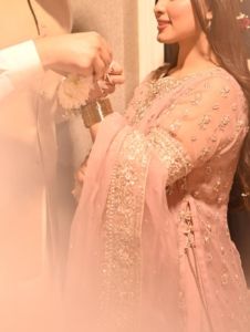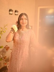 Amna looked radiant in a pink outfit. Her hair was styled half up, half down, and her makeup had a soft, dewy finish. While she did not reveal the groom’s face, the photos captured the warmth and happiness of the occasion, surrounded by close family and loved ones.