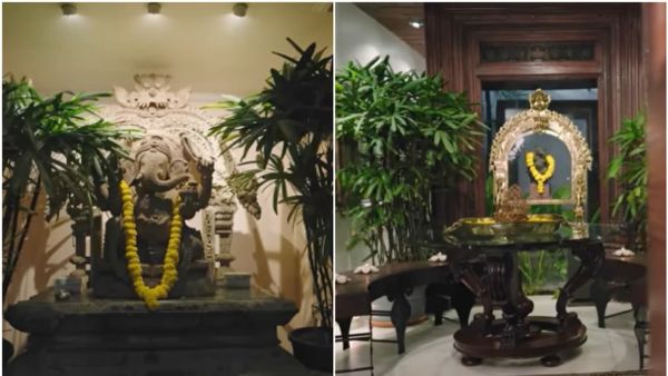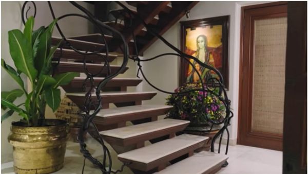 The house features a dedicated prayer corner with a statue of Lord Ganesha and a small seating area for pooja. Surrounded by plants and antique artefacts, this space adds a spiritual and peaceful vibe to the mansion, reflecting the family’s traditions and values.