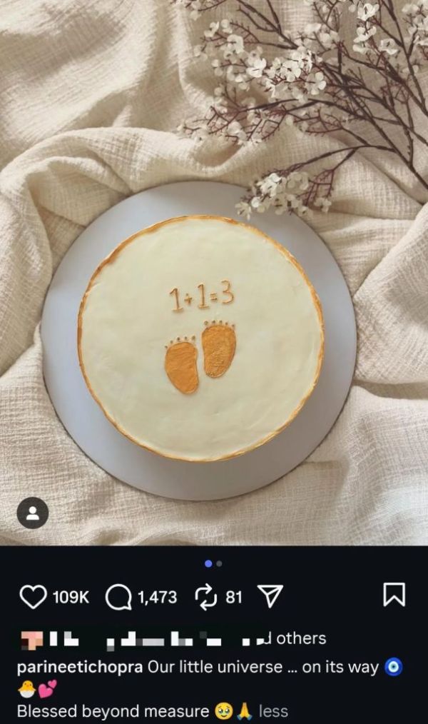 Parineeti Chopra and Raghav Chadha announced in August that their family is growing. On October 20, their son, Neer, was born, a name that not only has a meaning (“pure, divine, limitless”) but is also a beautiful combination of Parineeti and Raghav’s names. Parineeti wrote, “Our hearts found peace in an eternal drop of life.”