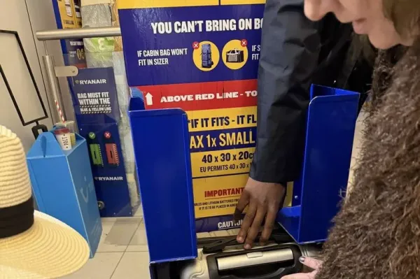 A Ryanairpassenger has shared her story after getting a fine over her suitcase. Gilly Bachelor said she was heading from Birmingham Airport to Malaga in Spain when her travel plans suddenly became £75 more expensive. The travel agency owner said she was boarding the planwhen staffput her cabin bag into the baggage sizer.
