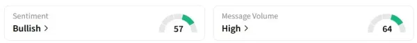 Despite the sharp intraday decline, retail sentiment on Stocktwits turned ‘bullish’ from ‘bearish’ amid ‘high’ message volumes.