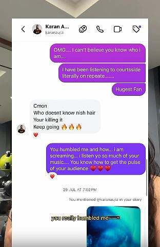 The actress, in the video, has attached a screenshot of their conversation on Instagram. We can see that in the messages sent by Parul, she is cearly fan-girling, and Karan praised her hair brand.