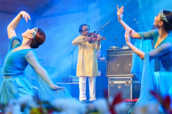 The Indian premiere of Navagraha Symphony, composed by Dr Subramaniam and inspired by the nine celestial planets, was a key highlight. The performance featured Kavita Krishnamurti and members of her family, combining Sanskrit verses with Western symphonic music.