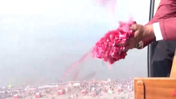 Mauni Amavasya: Flowers showered on devotees at Prayagraj’s Sangam