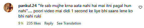 Netizens have hilariously reacted to the video. A netizen commented, "'Ye sab mujhe krna aata nahi hai mai itni pagal hun nahi'..... poori video mai didi 1 second ke liye bhi saans lene ko bhi nahi ruki (sic)."