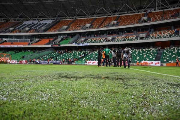 The incident occurring shortly before the venue was due to host the AFCON finaland led to a public apology from the country's Minister of Sport Claude Paulin Danho. The Confederation of African Football later attributed the issue to algae, which prevented the rain from soaking into the turf.