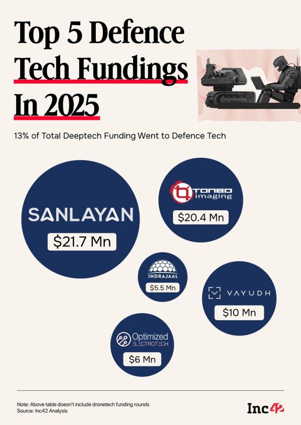 The State Of Defence Tech FundingFollowing recent geopolitical disruptions and supply-chain vulnerabilities, the Indian government has stepped up efforts to source defence equipment from domestic companies and startups.