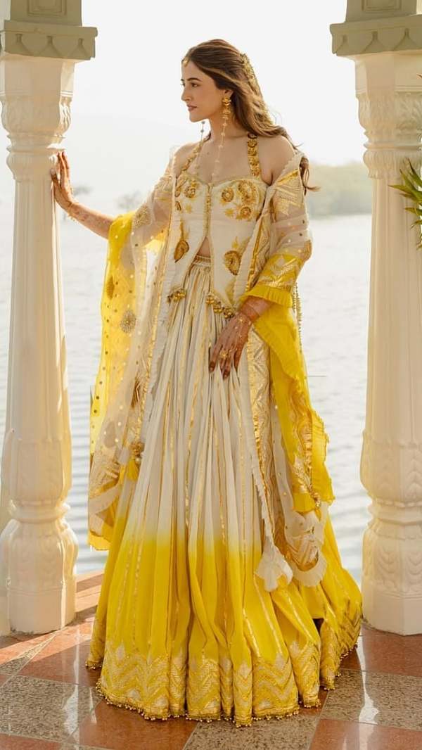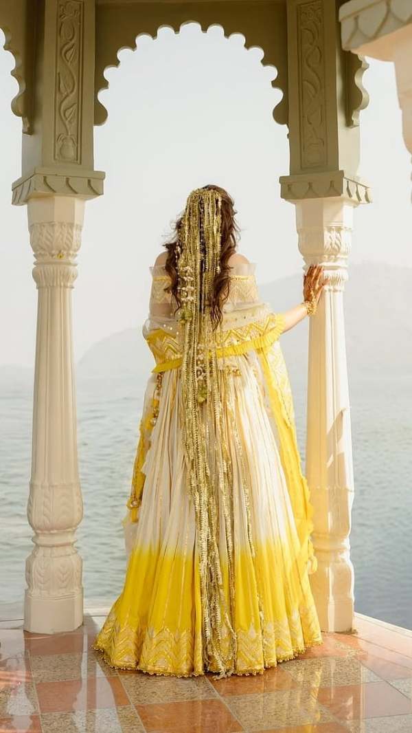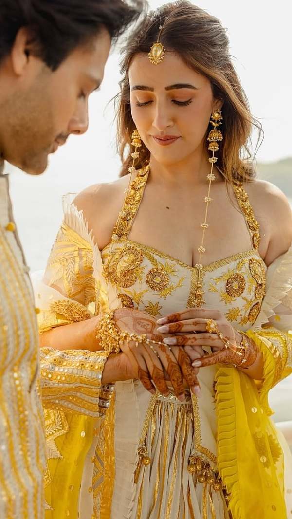 For the daytime ritual, the actress embraced a classic haldi colour palette, choosing a calming yellow-and-white outfit that felt festive yet elegant
