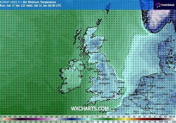 The weather will be accompanied by freezing temperatures across the UK, with the vast majority of areas waking on the morning of January 31 to sub-zero conditions.