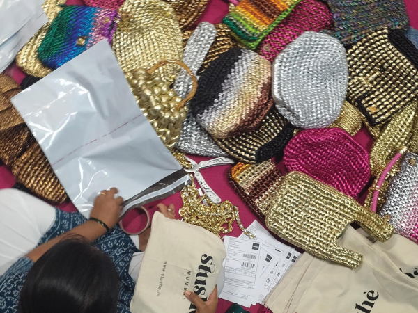 Today, Stushè is known for handcrafted vegan bags made with premium yarns. The collection includes crossbody bags, potlis, clutches, handbags, and bucket bags-each one entirely handmade.
