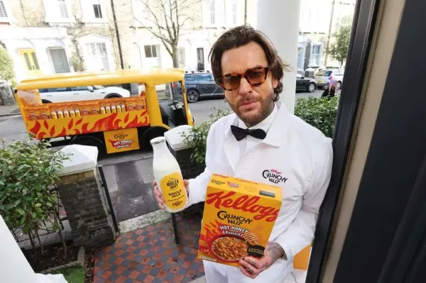 To mark the occasion, the brand partnered with telly personality Pete Wicks to distribute boxes of the cereal.