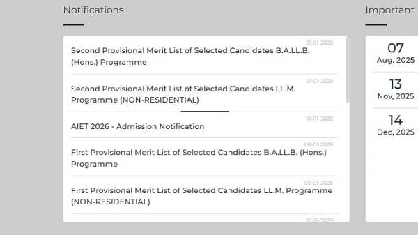AILET 2026 Second Merit List Released By NLU Delhi At nationallawuniversitydelhi.in