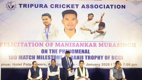 Tripura CM felicitates Manishankar Murasingh for 100 Ranji matches