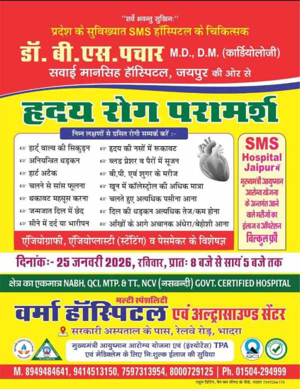Bhadra: Special check-up and counseling camp for heart patients at Verma Hospital.