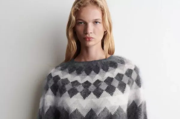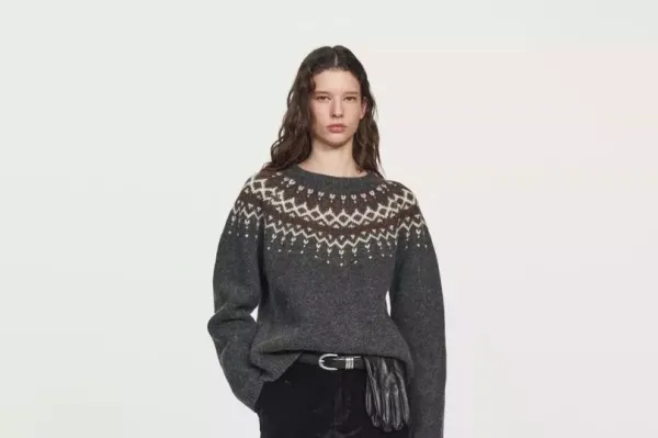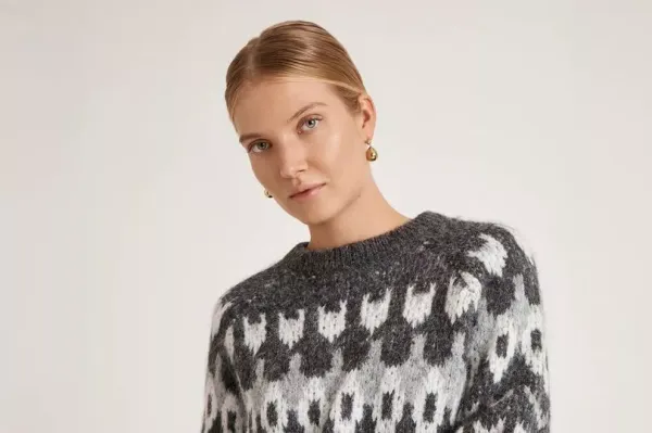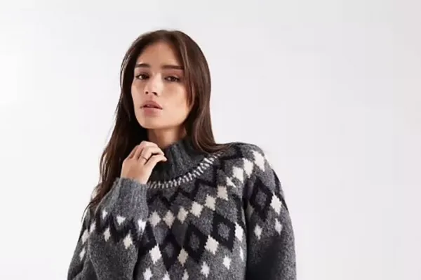 One of the most budget-friendly picks we’ve spotted, this fair isle knit from MandM is perfect for getting the Claudia look without breaking the bank. Its light grey colourway, patterned yoke and the ribbed cuffs and hem make it look far more expensive than it is.