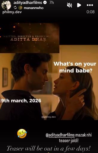 Taking to his Instagram handle, Aditya Dhar replied to a fan who asked him to release the film's teaser soon. In response, the filmmaker assured him of its release in a "few days."