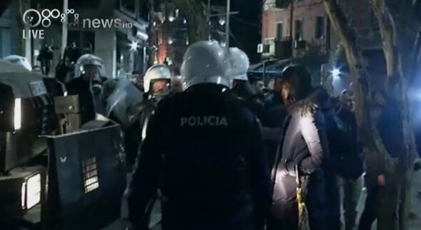Several police officers are thought to have been injured in the clash, local reports suggest three protesters were arrested at the scene.