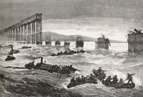 During a violent storm, the central "high girders" of the bridge collapsed as a passenger train from Burntisland crossed the river.