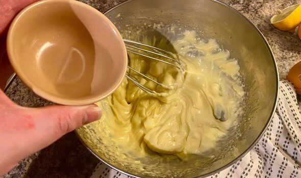 To make the mayonnaise, I started by adding the yolks, mustard, vinegar and lemon juice to a bowl before giving it a whisk.