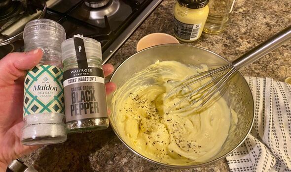 I then added a few drops of water just to help improve the texture before adding salt and pepper and giving it one final whisk.