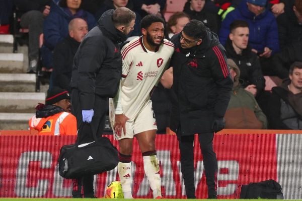 Joe Gomez was withdrawn duringSaturday's 3-2 lossto Bournemouth after a clash with goalkeeper Alisson Becker whilst attempting to prevent Evanilson from scoring,