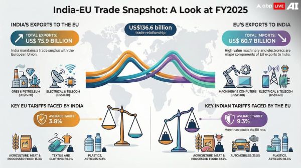 India-EU FTA: Tariff shocks, geopolitical disruptions and economic imperative to diversify have convinced India and the EU to fructify a free trade agreement ink after years of protracted negotiations and stalemate since 2007. Pragmatism has prevailed over India and the EU to narrow down differences and open the doors to a new chapter of economic engagement with a pact that promises to cut down tariffs, deepen value-chain integration and increase trade volumes.