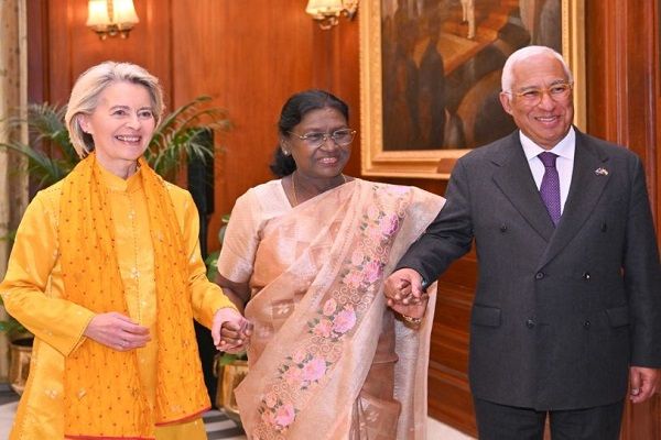 New Delhi, 27 January. Relations between India and the European Union (EU) marked a historic chapter as President Draupadi Murmu warmly welcomed European Council President Antonio Costa and European Commission President Ursula von der Leyen at Rashtrapati Bhavan.