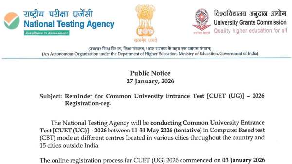 CUET UG Registration 2026: NTA Issues Important Notice At ugcnet.nta.nic.in; Details Here