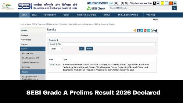 SEBI Grade A Prelims Result 2026 Out At sebi.gov.in; Phase 2 Exam On February 21