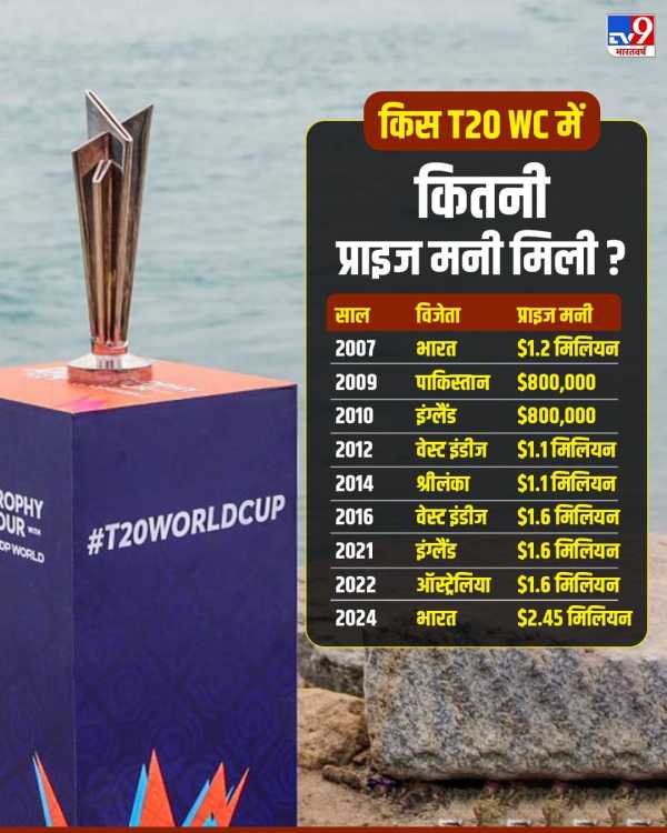 Now you know how much money was distributed as prize money in the most expensive T20 World Cup till date. Apart from that, how big was the difference in the prize money received by Team India, which became the champion of T20 World Cup twice at a gap of 17 years? But, how much money was showered on the team that became champion in each of the 9 editions of T20 World Cup that have been played so far?