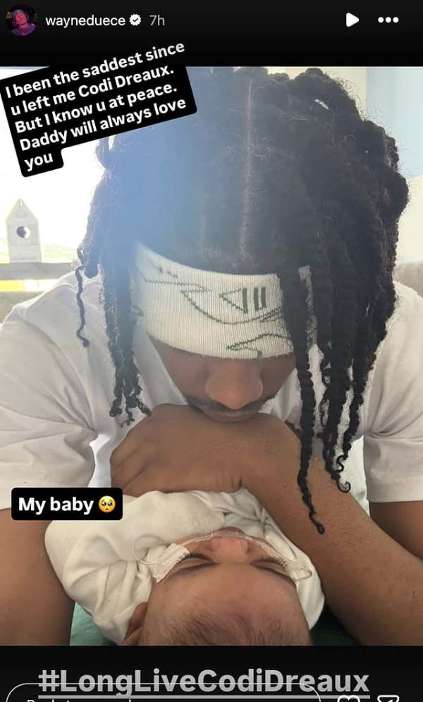 Cori's fiancé, Wayne Deuce, shared a series of photos on his Instagram account. He wrote, "I been the saddest since u left me Codi Dreaux. But I know u at peace. Daddy will always love you."