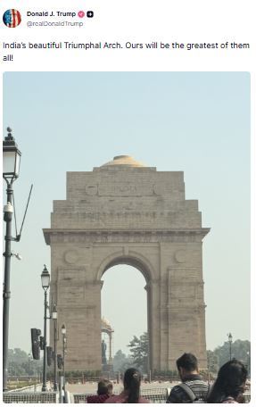 He said on Truth Social, "India's beautiful Triumphal Arch. Ours will be the greatest of them all!"