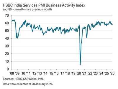 India Services PMI hits two-month high at 58.5 in January, composite index rises to 58.4
