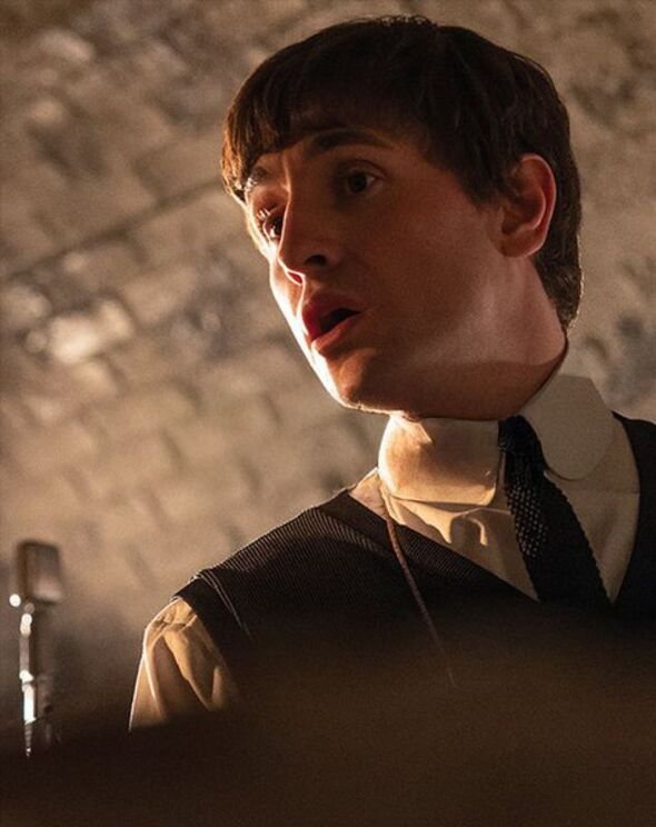 Stranger Things star Joseph Quinn is seen looking pensive as George Harrison in the advance images. His longer hair indicates this is a scene from the 1970s.