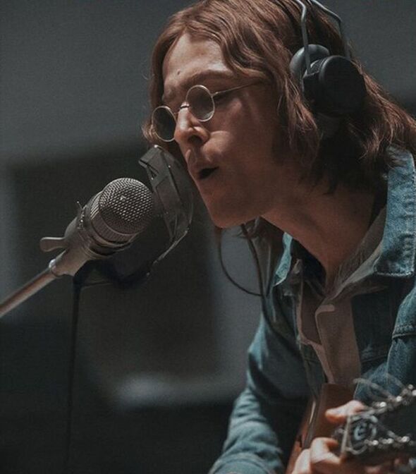 Babygirl's breakout star Harris Dickinson adopts John Lennon's trademark glasses in the advance image from the upcoming biopic.