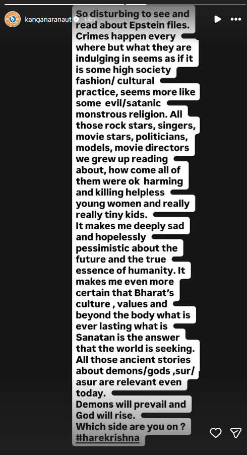 Taking to her Instagram Story on Tuesday evening, Kangana shared her thoughts about how "disturbing" the details felt to her and how they changed the way she looks at power, fame and society.
