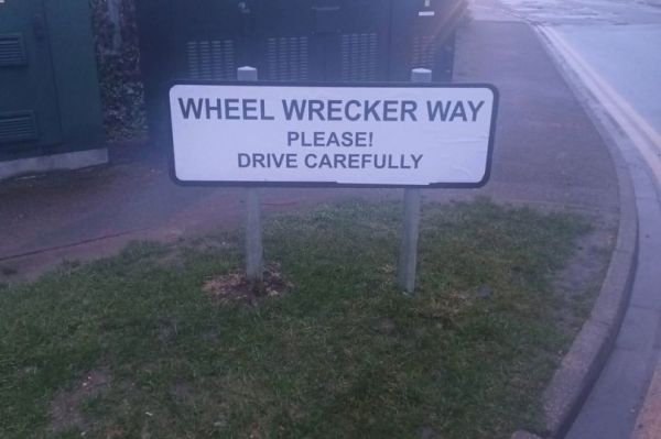 The anonymous driver switched the names of Old Bridge Way in Shefford, Bedfordshire, to "Wheel Wrecker Way" and "Potholesville" after angry locals complained of "horrendous" conditions on the road. Scores of drivers have had to have their tyres replaced multiple times after driving down the road.
