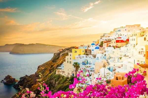 Tourists can meander through cobbled pathways flanked by whitewashed structures adorned with pink bougainvillaea blooms for a picture-perfect Mamma Mia! moment. Due to its dramatic position perched atop volcanic cliffs, there's an array of hiking trails to appreciate the island's distinctive charm, including the renowned Fira-Oia trail.