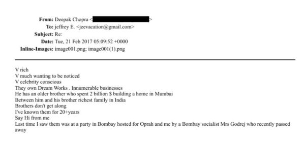 Epstein asked Deepak Chopra’s opinion on Anil Ambani