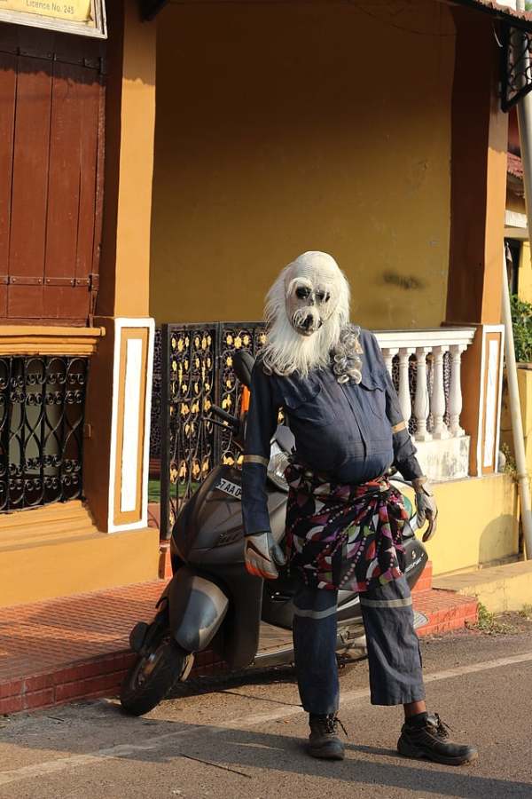 With their bellies filled after a quick snack and a prayer for a good day, the masked men hit the island roads. Neighbours and friends transform into unknown, frightful figures, popularly known as Divar Island’s Potekars.