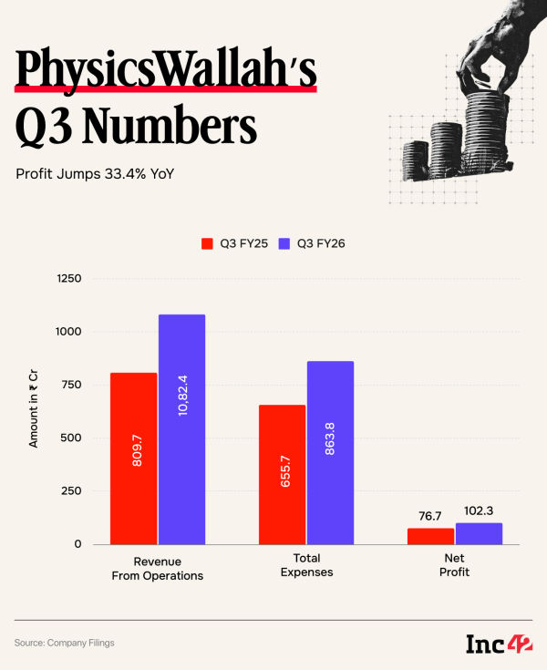 PW reported a 33.4% YoY jump in consolidated net profit to ₹102 Cr for the quarter ended December 2025, up from ₹76.7 Cr a year ago. Flush with IPO proceeds and ₹642.9 Cr in operating cash flows during 9M FY26, the company has over ₹5,000 Cr to invest in the next phase, clear on net letting it set idle.