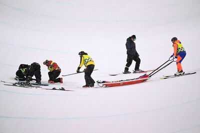 Winter Olympics star in horror crash and left motionless on the floor as officials slammed