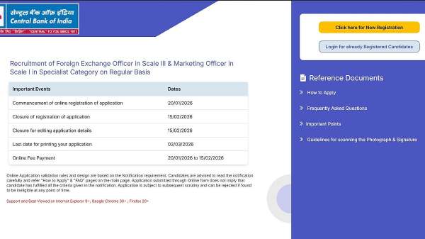 Central Bank of India Recruitment 2026: Registration Ends Tomorrow; Check Eligibility, Fees & Steps to Apply Here