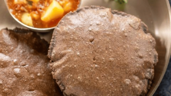 Mix 1 cup kuttu (buckwheat) flour with 1 mashed boiled potato, ½ tsp cumin powder, chopped green chillies, sendha namak, and enough hot water for a firm dough—rest 10 minutes. Roll into small puris and deep-fry in ghee till golden and puffed. These crisp, nutty falahari pooris soak up sabzis beautifully, making your Maha Shivaratri 2026 thali festive and filling.
