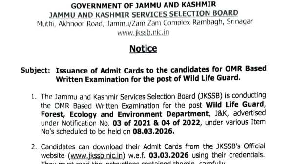 JKSSB Wild Life Guard Admit Card 2026 Out At jkssb.nic.in; Exam Scheduled For March 8