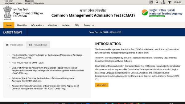 CMAT 2026 Result Released At cmat.nta.nic.in: Check Scorecard & Steps To Download