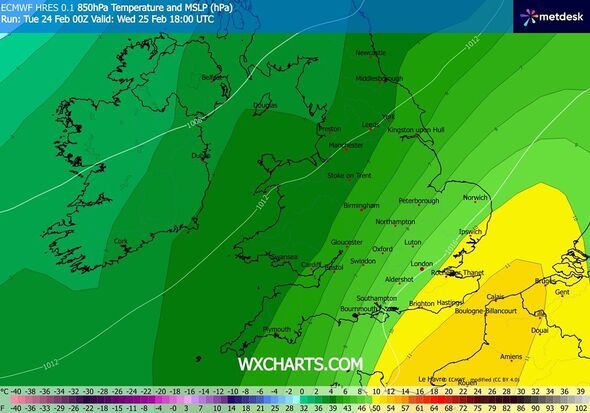 Parts of the UK are likely to bask in much warmer conditions as the latest weather maps suggest temperatures jumping to 18C on Wednesday (February 24). It is even likely to be much warmer in the UK than it is in Greece, which is expected to reach around 12C during the same time.